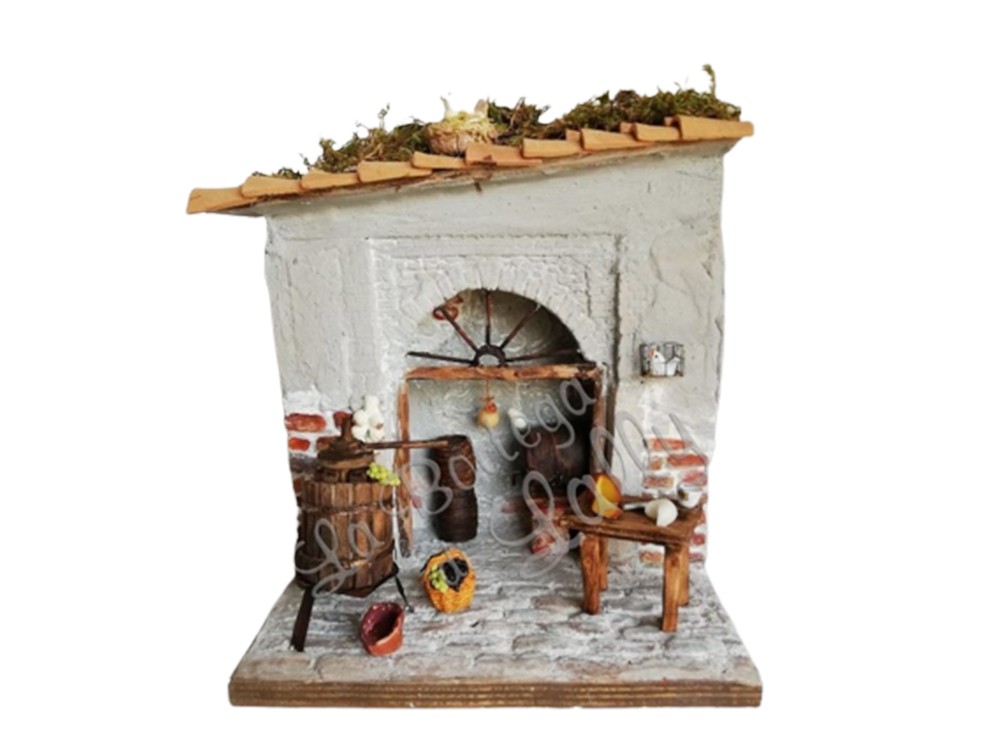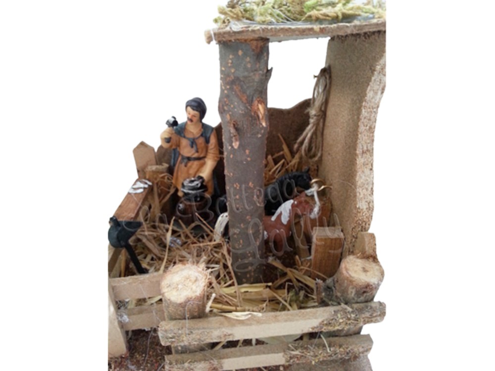 Bellissima e variegata ambientazione realizzata in legno e gesso per arricchire il vostro presepe e renderlo più bello.