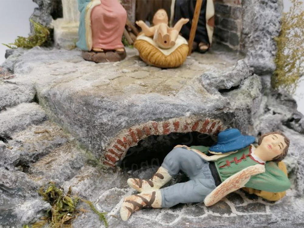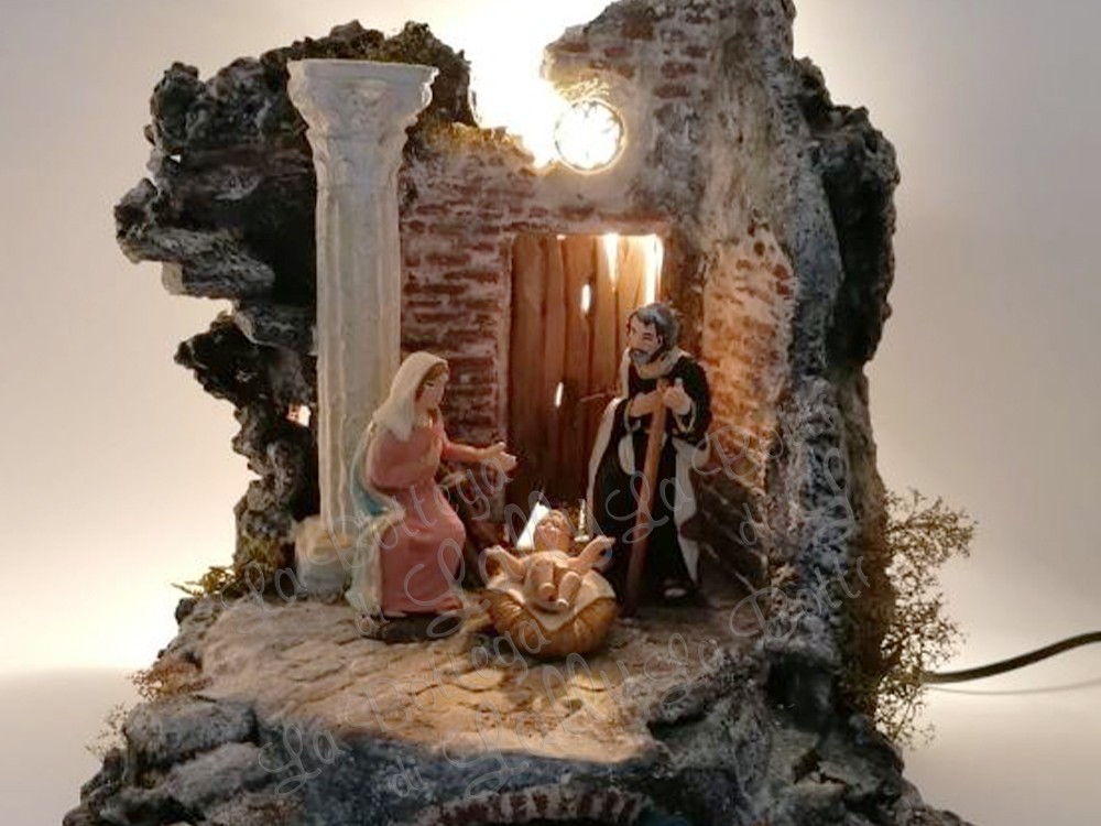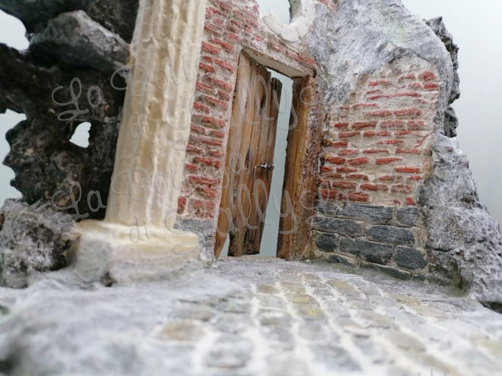 Ambientazione presepe 25 x 25 cm rappresentante una capanna in uno scorcio napoletano.