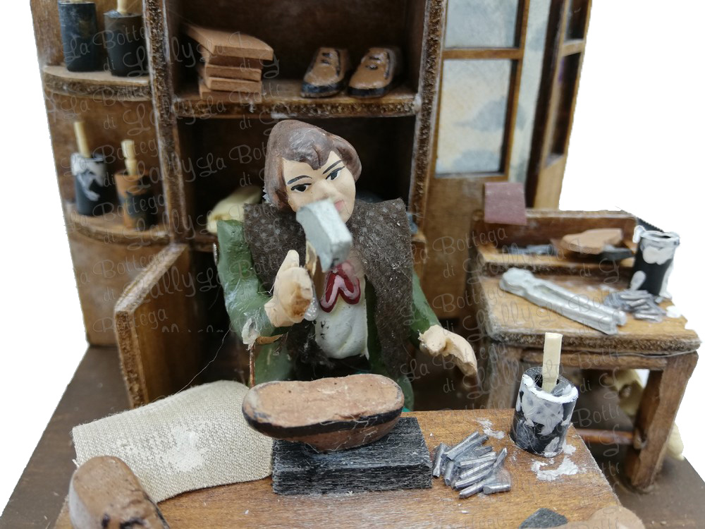 Scena per presepe in movimento realizzata e dipinta a mano.
