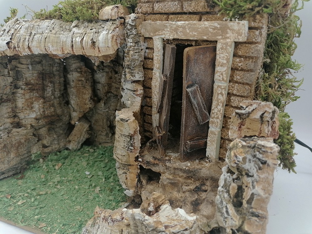 La capanna realizzata e dipinta a mano, misura 20 x 30 x 28 cm.