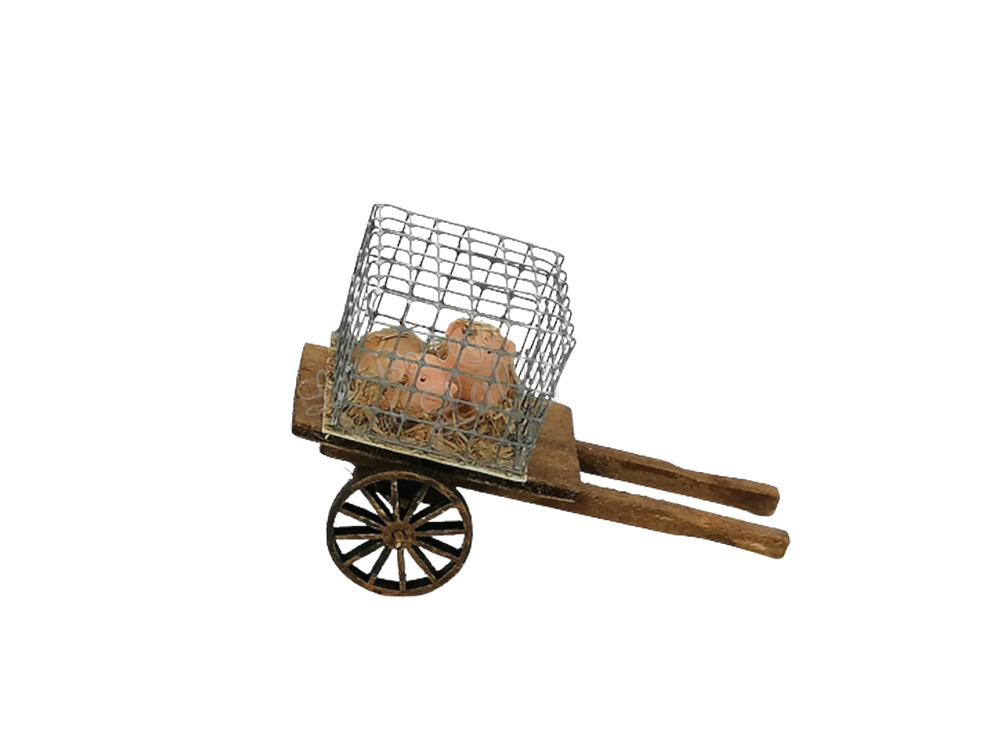 Carretto con Gabbia con i Maialini – Misura: 10,5 x 5 x 6.5 cm