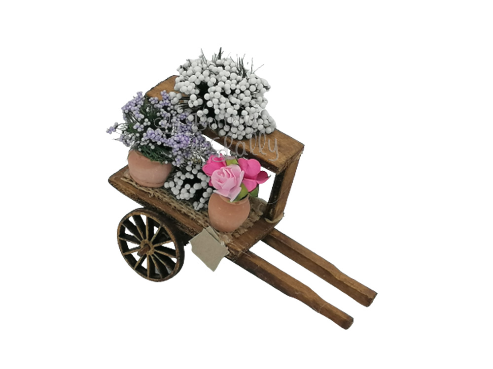 Carretto in legno con i fiori a 2 piani, realizzato e dipinto a mano.