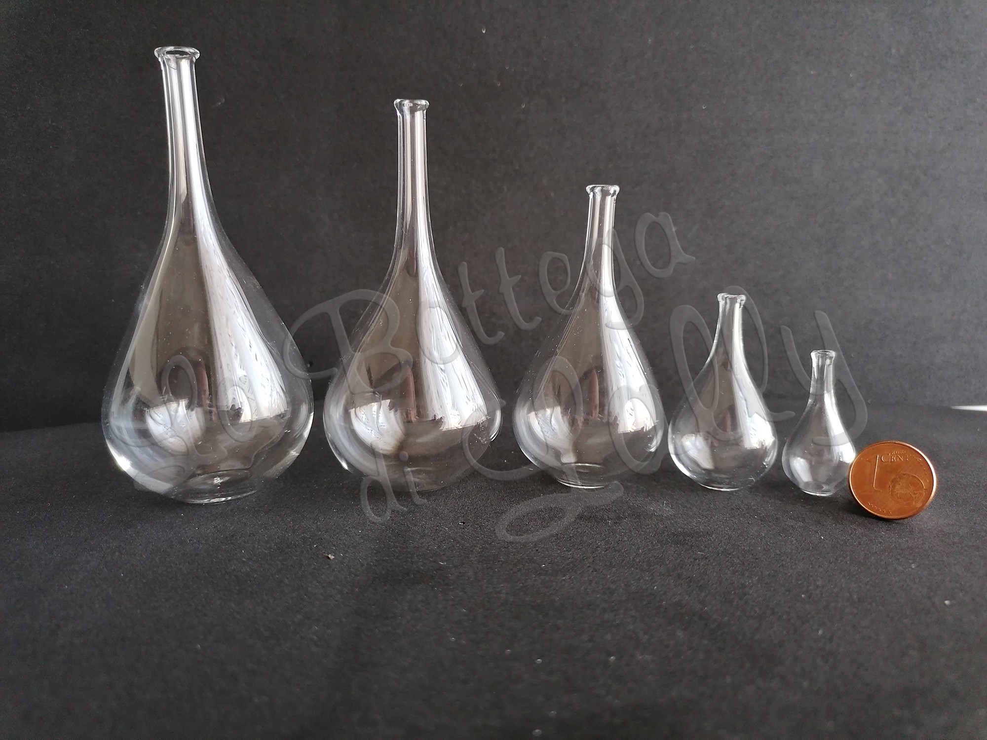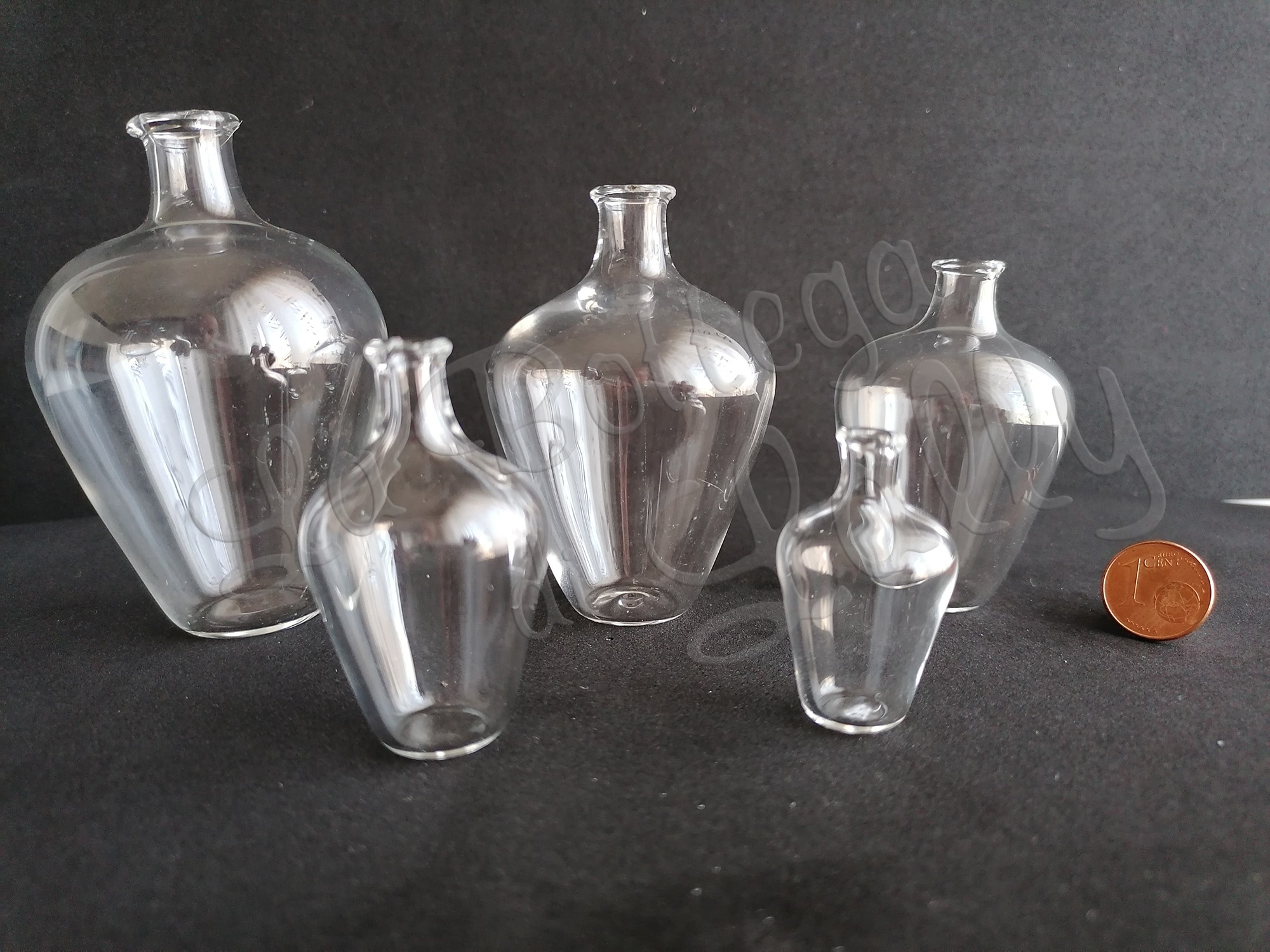 Come si può vedere dalle due immagini il collo del fiasco è più lungo nella misura h 10 cm in proporzione.