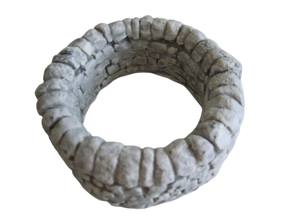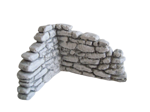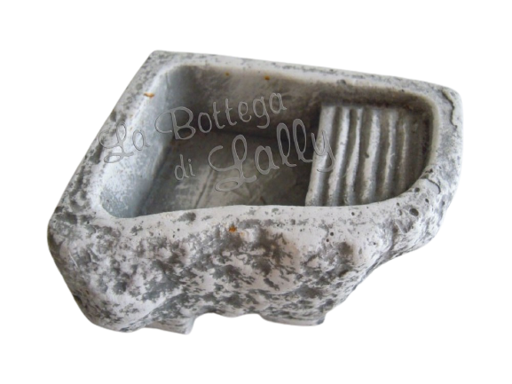 Ambientazione con fontana finta ad angolo in gesso con secchio ed anfora
