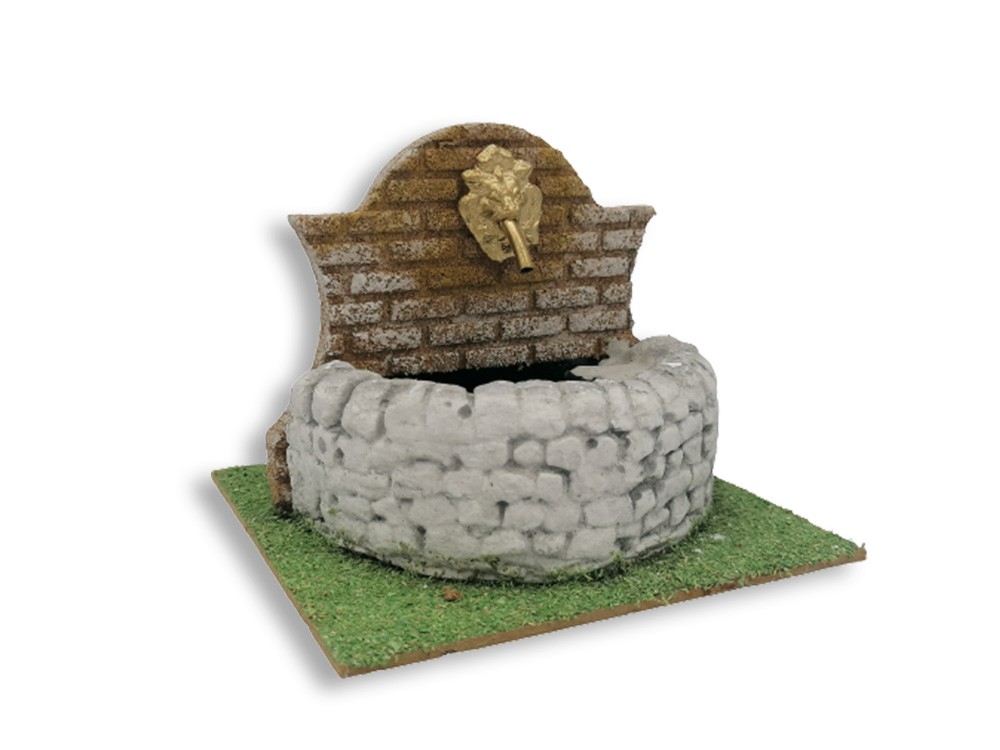 Fontana realizzata artigianalmente in gesso e sughero, con bocca di leone in resina.