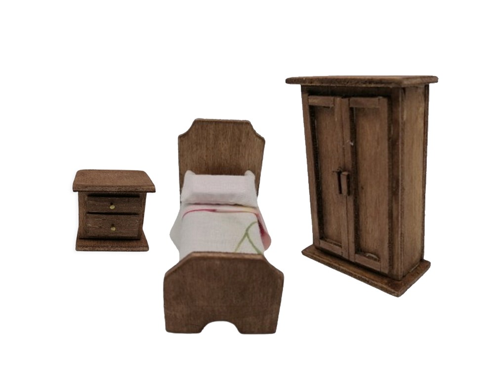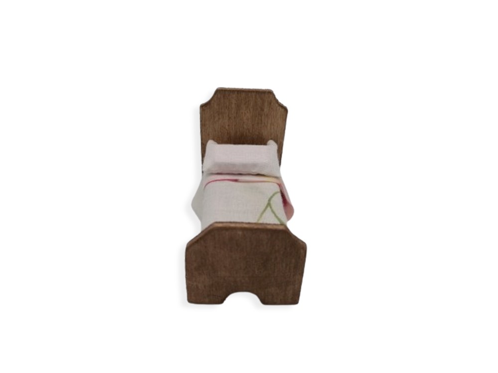 Riproduzione di letto in miniatura, adatto a presepi e casa delle bambole, realizzato in legno.