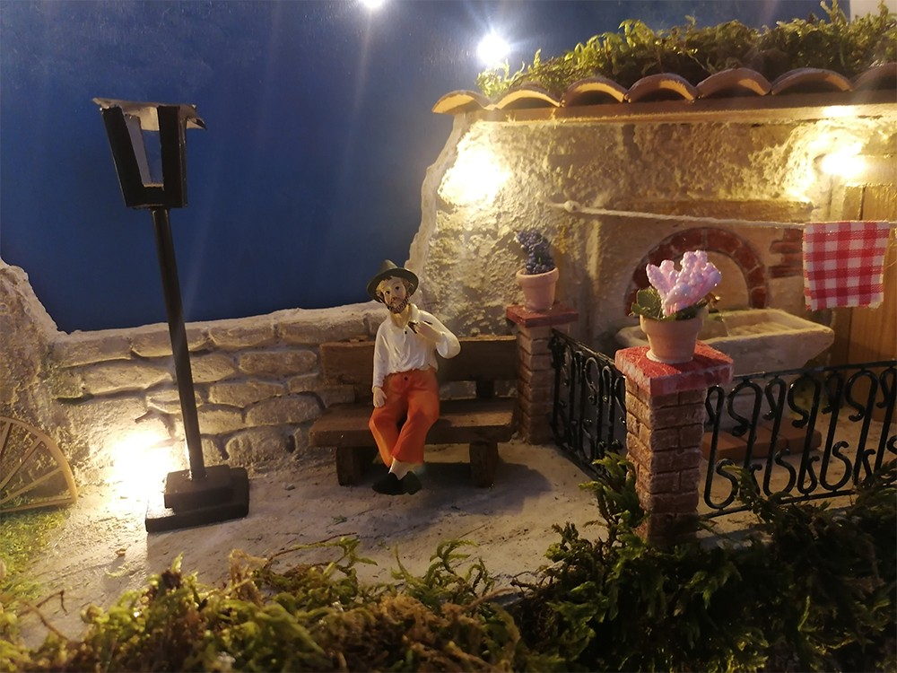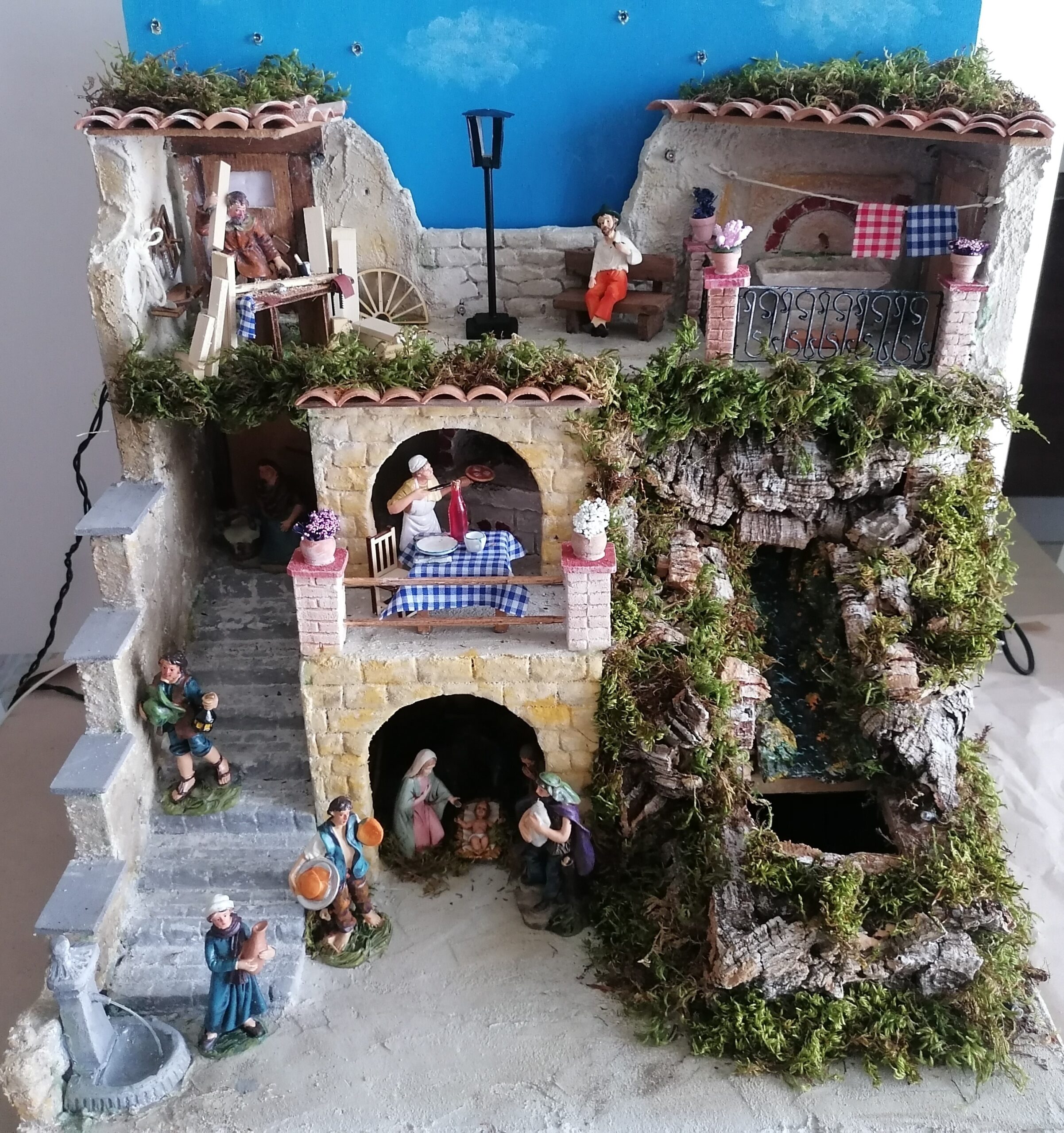 Il presepe misura 60 x 40 cm ed è compreso di cielo con luci e cascata funzionante con motore AC 220-240 v 50Hz – 3W .
